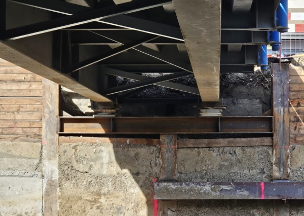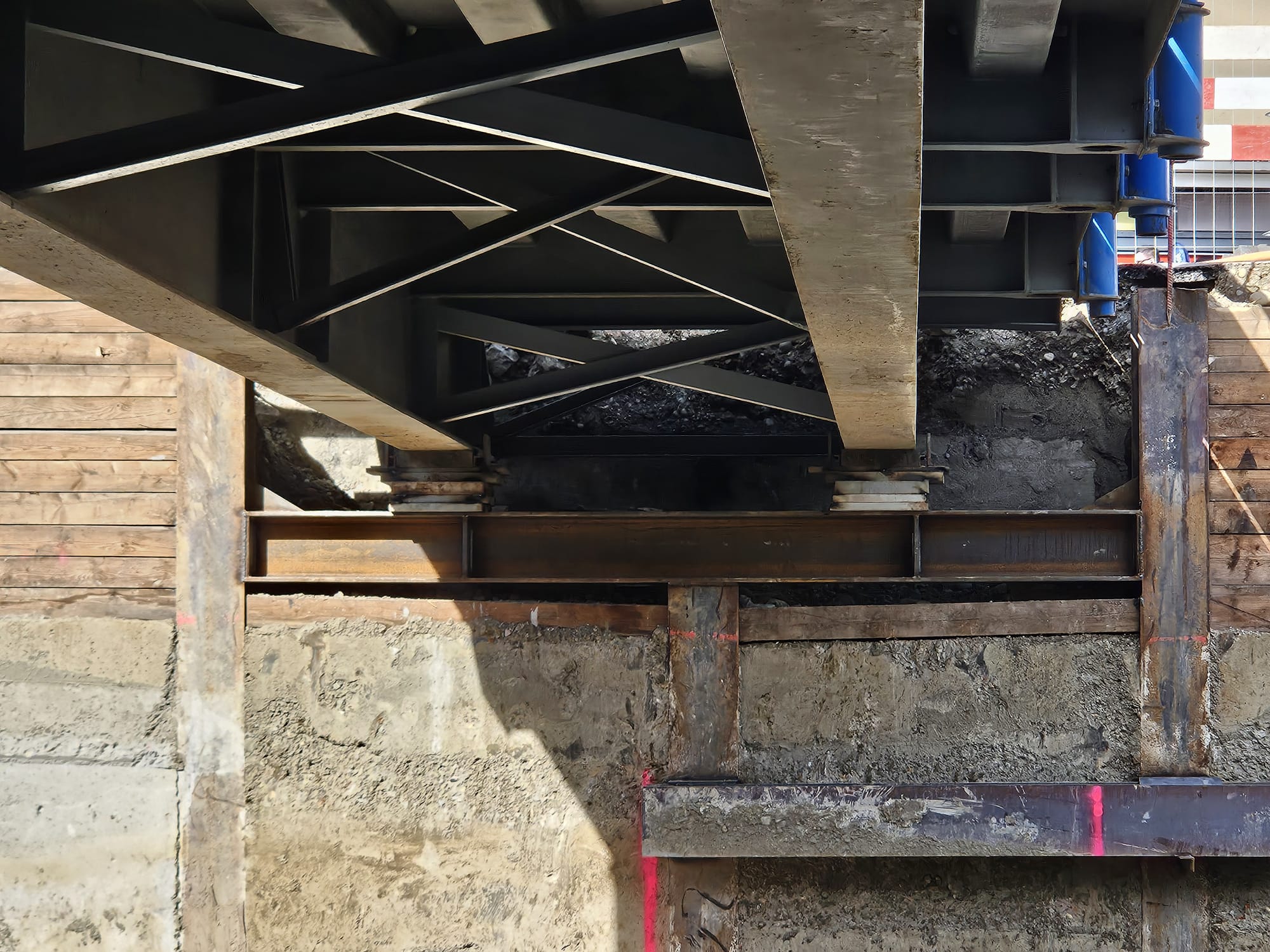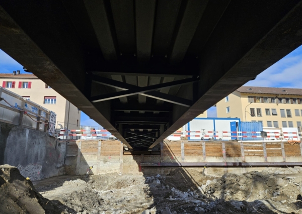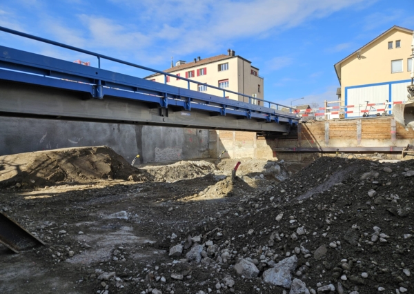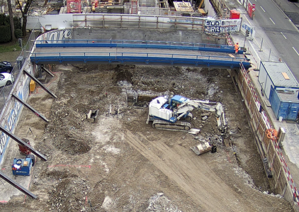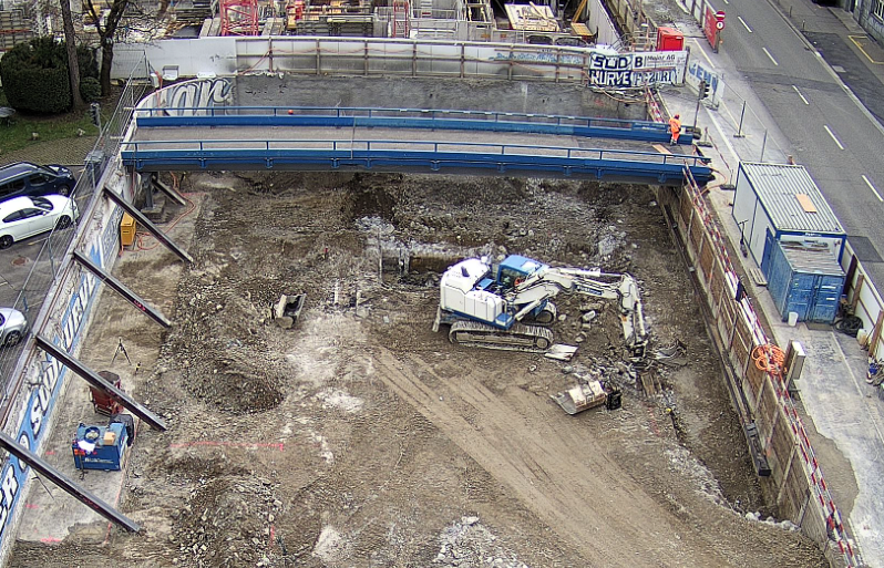 Bei uns reicht eine – dafür eine aussergewöhnliche. Beim Ersatzneubau eines Mehrfamilienhauses an der Altstetterstrasse in Zürich sichert eine Hilfsbrücke mit 21m Spannweite über der Baugrube die Erschliessung der angrenzenden Parzellen während der Bauphase.