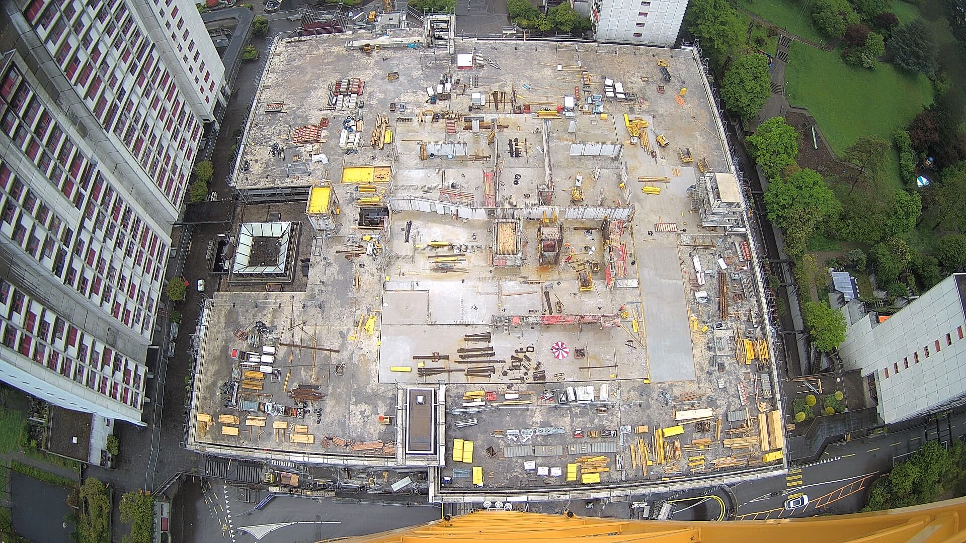 Obschon so unscheinbar, wie nie seit dem Baubeginn vor rund 14 Monaten wurde hiermit ein grosser Meilenstein erreicht. Der Abschluss der letzten Deckenetappe auf Höhe des Zentrumdaches ist für das Projekt von grosser Tragweite.